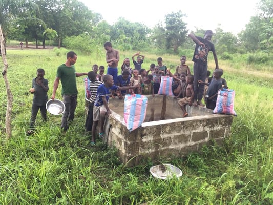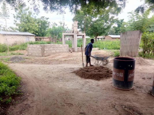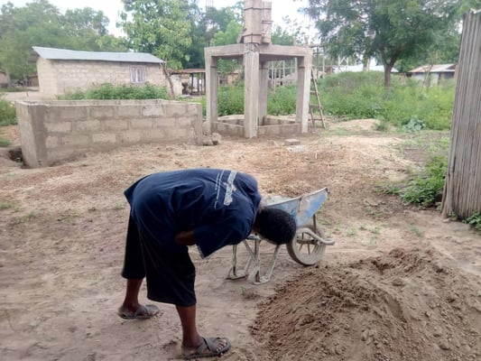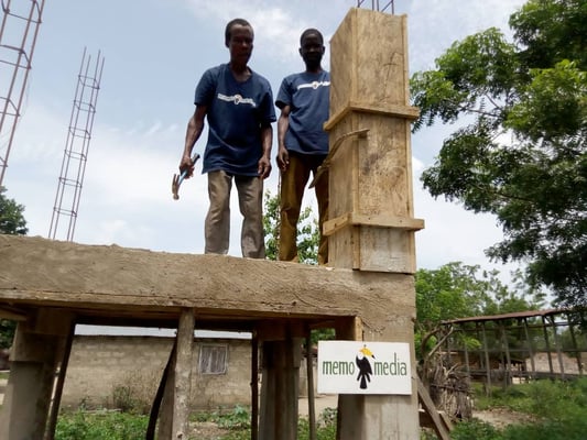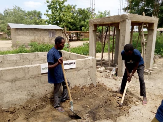 Als große Erleichertung empfinden unsere Leute in Togo das zusätzliche Baumaterial, welches wir teils aus Deutschland mitbringen oder in Lomé kaufen konnten. Eine Schubkarre spart viel Zeit und das mühsame Schleppen des angerührten Zements entfällt fast gänzlich. Eine besondere Freude für unsere Bauherren sind die von memo media gesponserten T-Shirts. Damit baut es sich doch gleich zwei mal so gut.