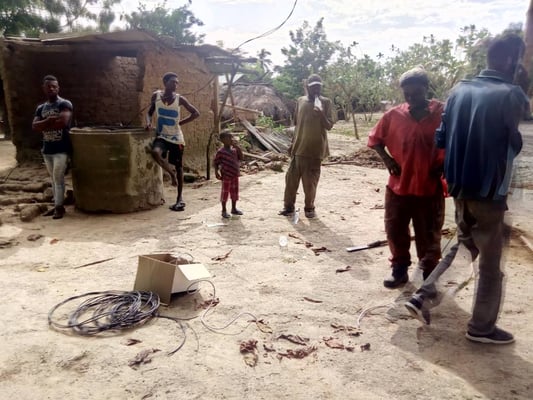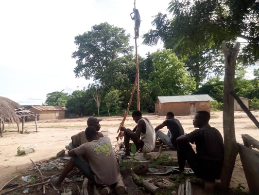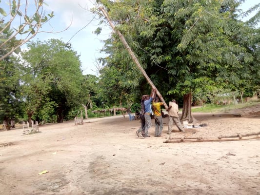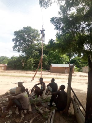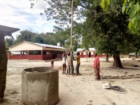 Wir hatten im Januar in Abouzokopé ein neues Solarsystem in Betrieb genommen. Damit können bis zu 8 Haushalte, unabhängig voneinander, sich an das Stromnetz anschließen lassen. Port 5 bis 8 waren bisher noch frei. Nun hat die Dorfgemeinschaft beschlossen, den Port 5 für die Dorfbeleuchtung freischalten zu lassen. Das Entgeld wird über Micropayment per Handy bezahlt. Die Kosten für die Dorfgemeinschaft berträgt im Monat 10 EURO, die im übrigen auch gespendet werden können. In den Bildern sieht man, wie der erste Lichtmast aufgestellt wird.