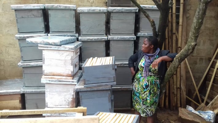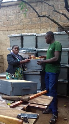 Die nächsten 50 Bienenstöcke sind fertig und werden in den kommenden Tagen auf der Fläche aufgestellt. 100 sind geschafft! Mit der Produktion der nächsten 50 Bienenstöcke stehen wir in den Startlöchern. Dieses Mal wurden die Bienenstöcke mit einer grauen Schutzlasur überzogen. Wie immer erhalten alle Bienenstöcke eine eigene Nummer und der Aufstellpaltz wird mit GPS eingemessen. Wir gehen davon aus, daß innerhalb von vier Wochen auch diese Bienenstöcke Bewohner finden - denn auch in Togo ist die (Bienen) Wohnungsnot groß.